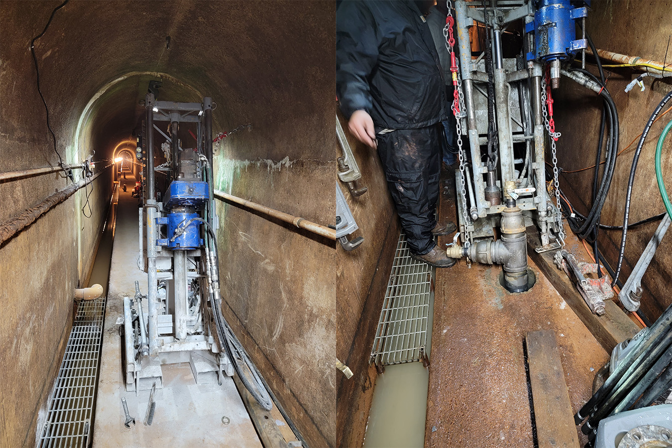 The 50 hp SD-1500 JKS Boyles Super300U electric-hydraulic or diesel-hydraulic diamond core drill is highly versatile and adaptable. The drill can be disassembled to fit through tight openings and equipped with either surface or underground masts and winches.