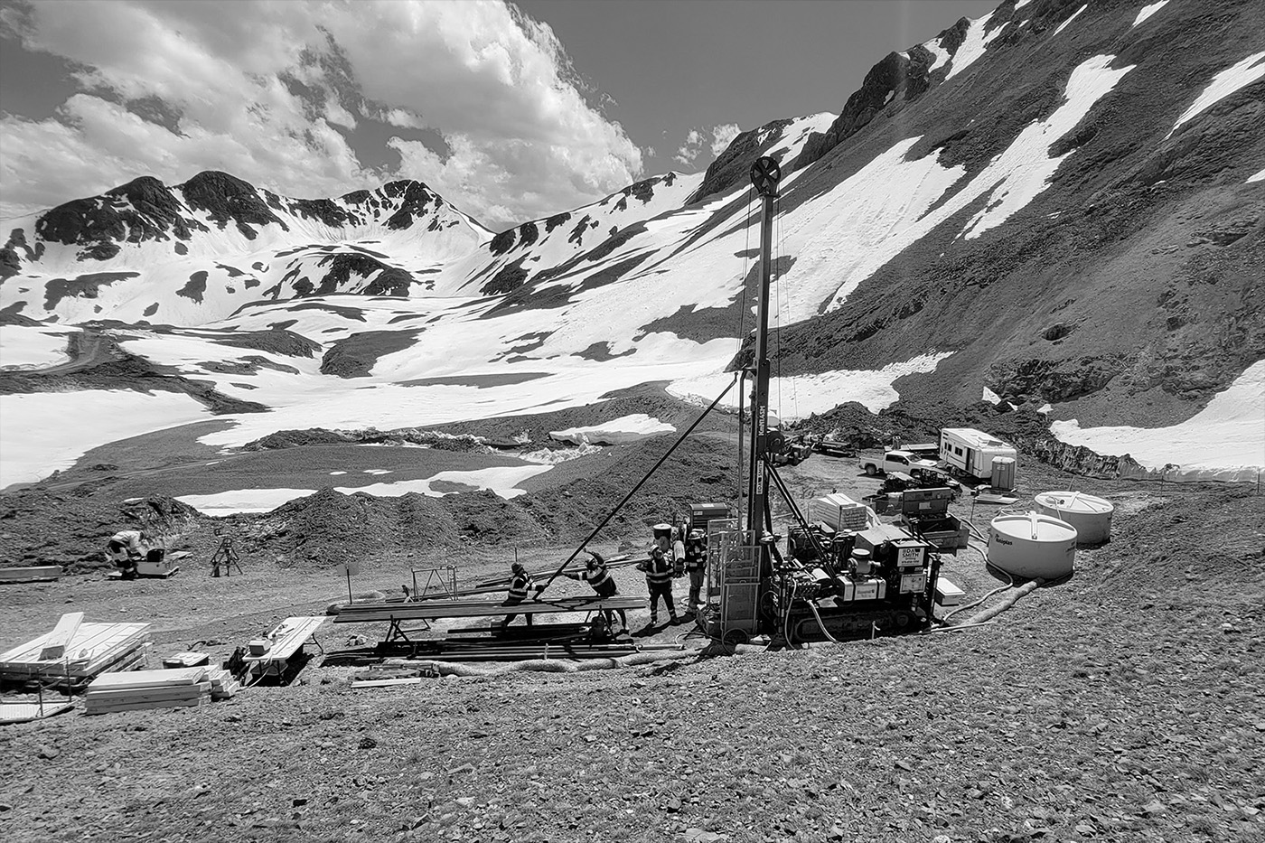 In October 2024, DA Smith successfully completed a two-year surface drilling campaign for the U.S. Environmental Protection Agency at the Bonita Peak Mining District Superfund Site near Silverton, Colorado. Multiple angled and vertical holes were cored using directional steering to depths reaching 900 feet, targeting underground workings of the historic Sunnyside gold mine. Holes were completed as 3-inch or 4-inch water monitoring wells for ongoing hydrologic study. At the start of each drilling season, mobilization to the high-alpine mountain site, located at an elevation of 12,200 feet, required clearing deep snow and tramming heavy equipment with a dozer.