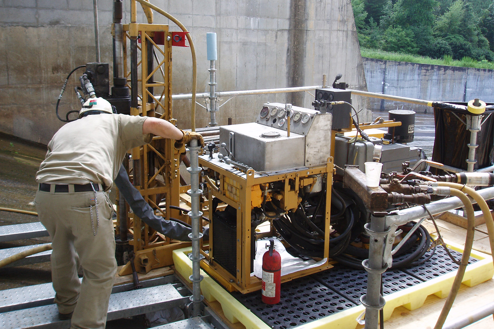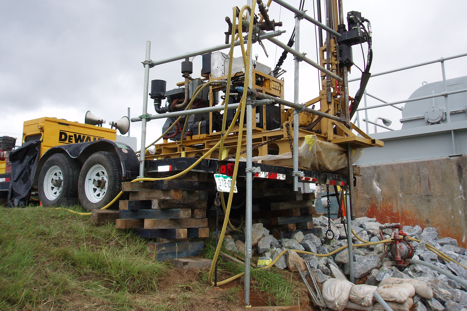 In 2009, DA Smith* completed drilling and overcore stress measurements under contract to HDR at the Duke Energy Keowee Dam Spillway located at the Oconee Nuclear Station near Seneca, South Carolina. The purpose of the program was to drill observation core holes and measure stress in the concrete ogee of the Gates 1 and 4 spillway bays. Tasks included: