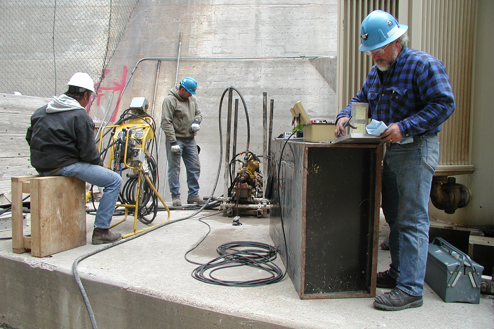 In 2003, DA Smith* was contracted to supply the specialized equipment and personnel required to conduct overcore stress measuremets at the US Bureau of Reclamation (USBR) Seminoe Dam, located near Rawlins, Wyoming. The project consisted of two vertical holes drilled from the crest of the dam and two horizontal holes drilled from the downstream face of the dam. Eleven 2D stress measurements were completed using the U.S. Bureau of Mines borehole deformation gage method between 49 and 75 feet deep in the two vertical holes. Nine stress determinations were completed in the two horizontal holes from 10 to 30 feet deep.
